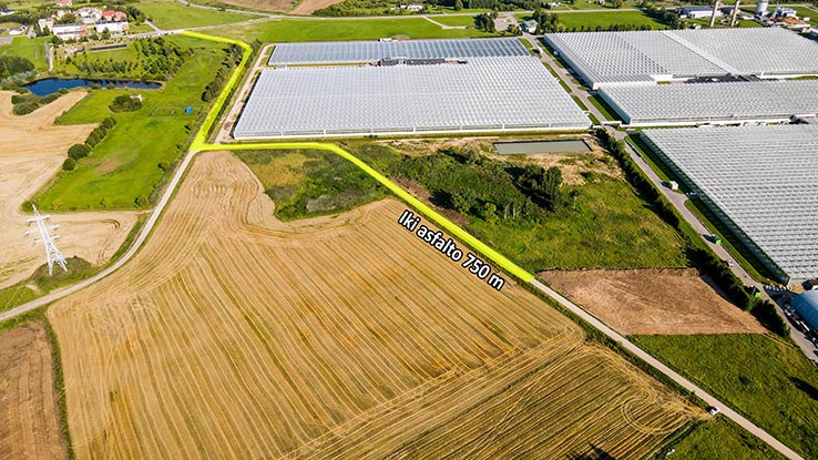 – Iki autostrados viaduko Vilnius/Kaunas kryptimis 7 km. (asfaltu)